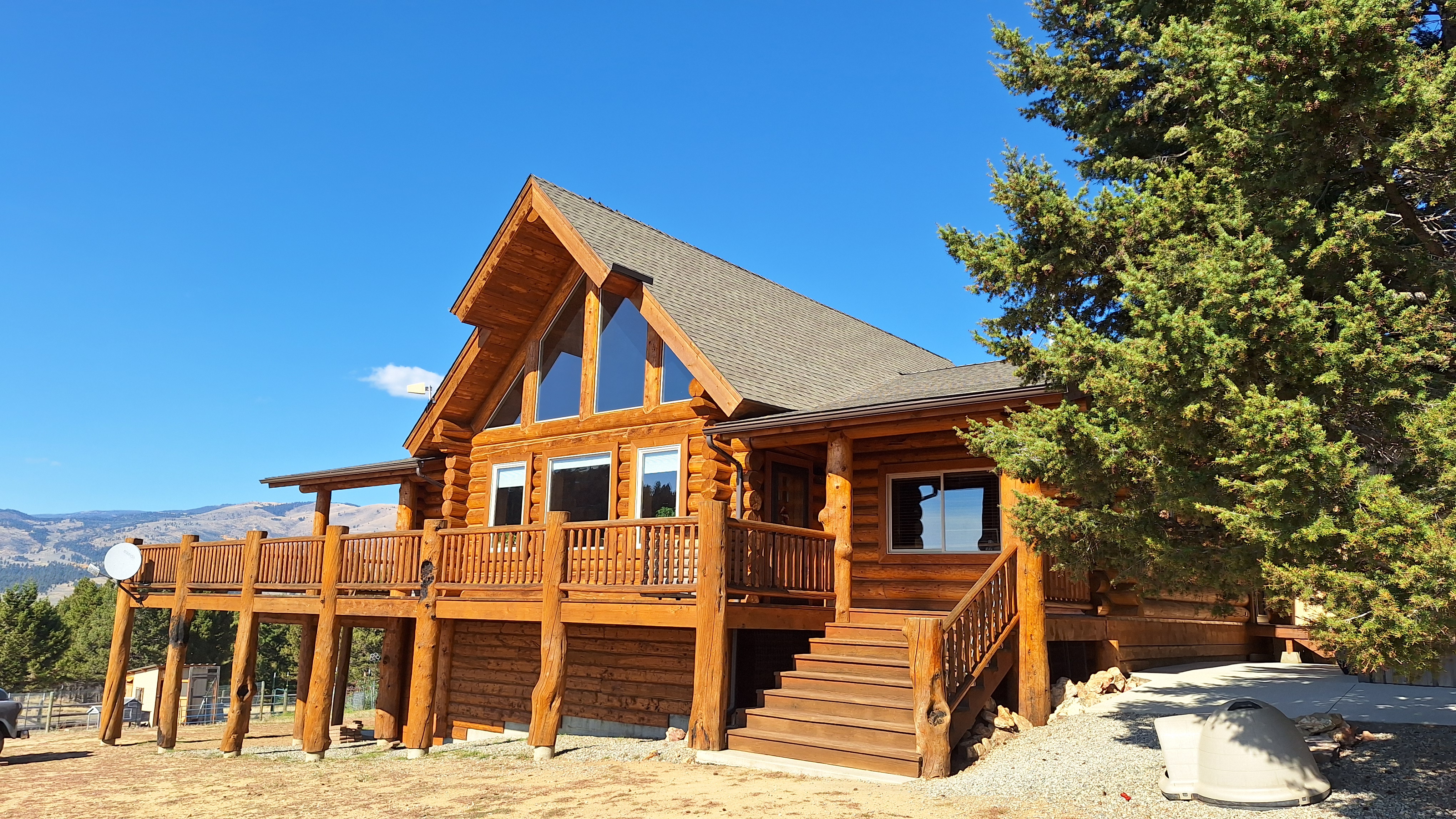 This Loge Home in the hills of Boulder, Mt was in a need of some fresh stain. it had been a few years since the last time it was coated. For this project I had to use a lift to reach the peaks of the house to do it safely